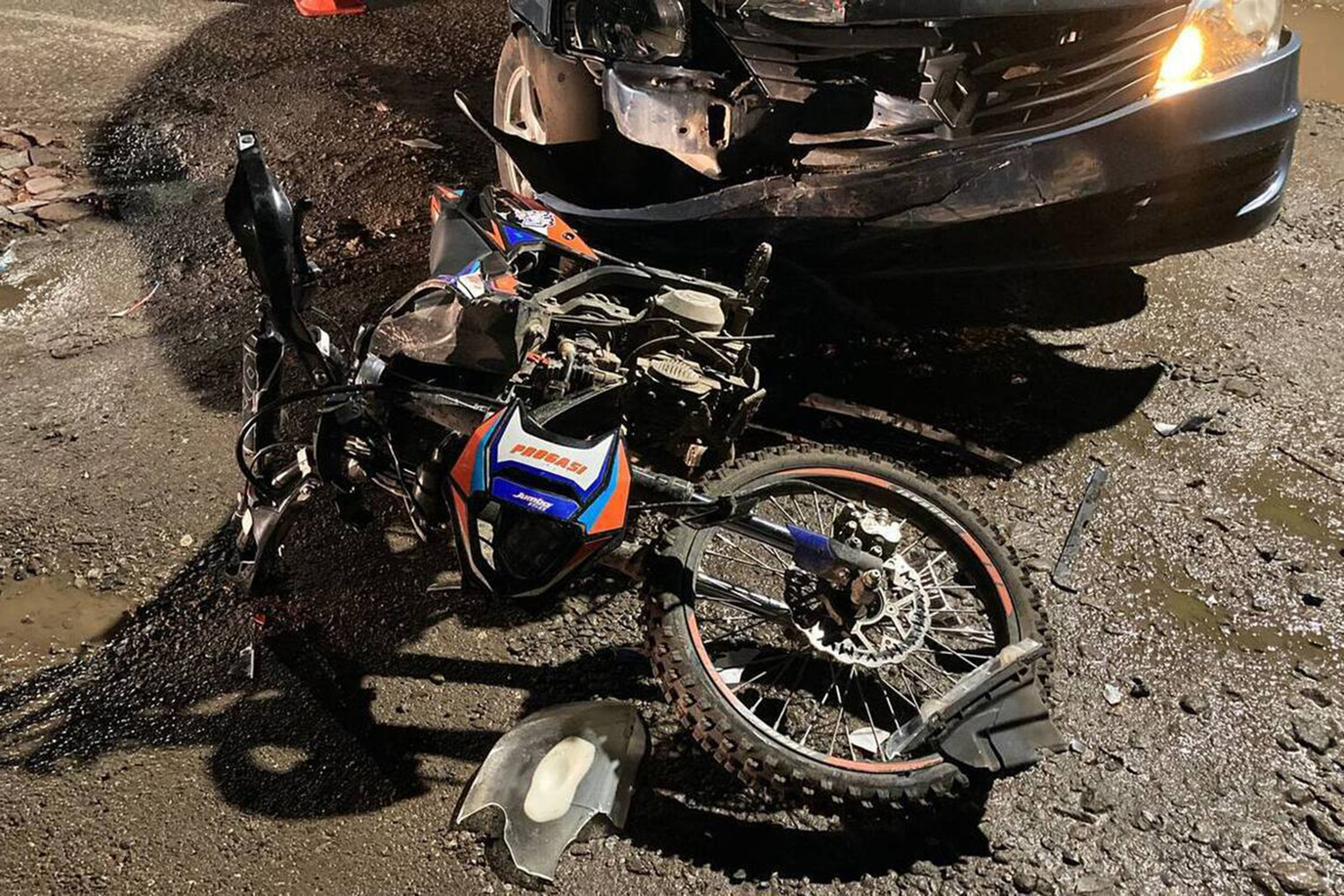 По информации канала, за рулем питбайка был 15-летний подросток, у которого не было прав на управление транспортом. В результате столкновения школьник получил травмы. Прибывшие медики госпитализировали пострадавшего.