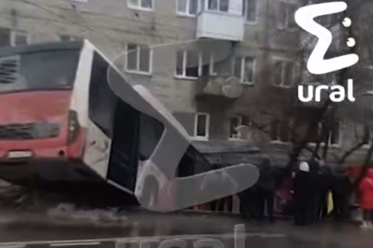 Рейсовый автобус без водителя вылетел в кювет в Соликамске рядом с жилым домом