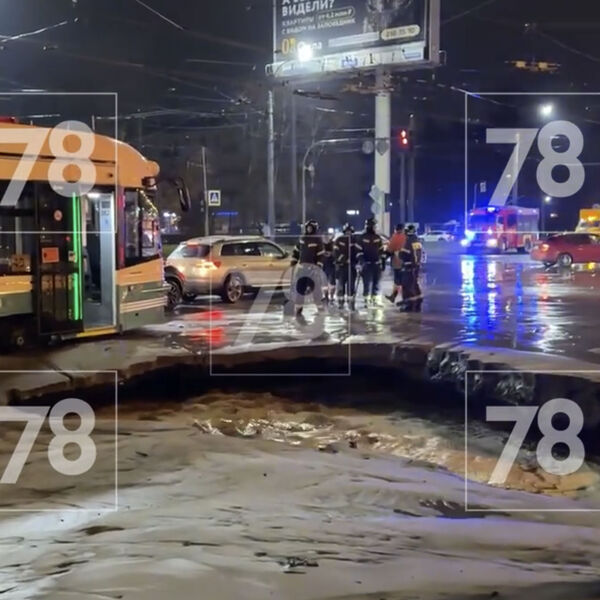 Гигантская дыра возникла на дороге в Санкт-Петербурге после прорыва трубы