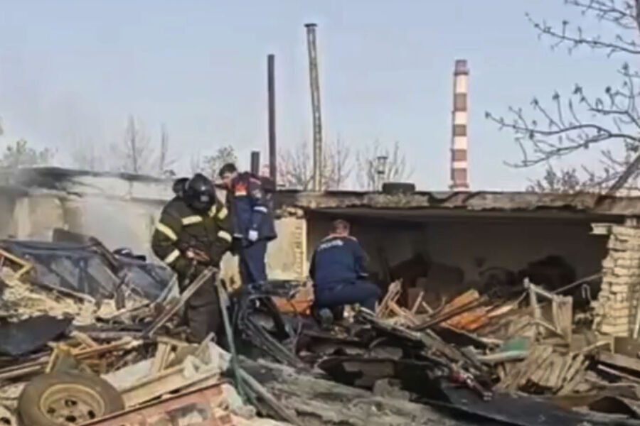 Видео: гаражи разнесло взрывом на Ставрополье, из-под завалов достали человека
