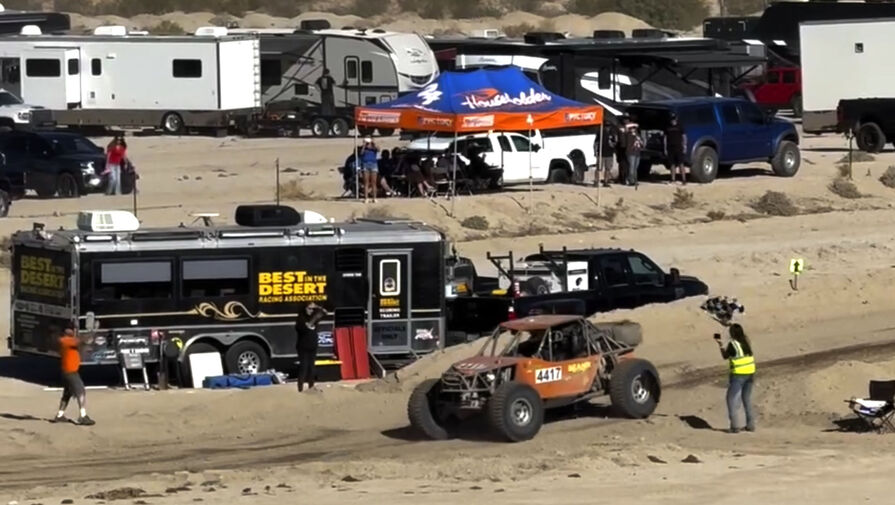 На внедорожных соревнованиях Laughlin Desert Classic в США пилот одного из автомобилей был вынужден ехать 12 км до финиша по пустыне задним ходом из-за поломки коробки передач. Об этом пишет The Drive.