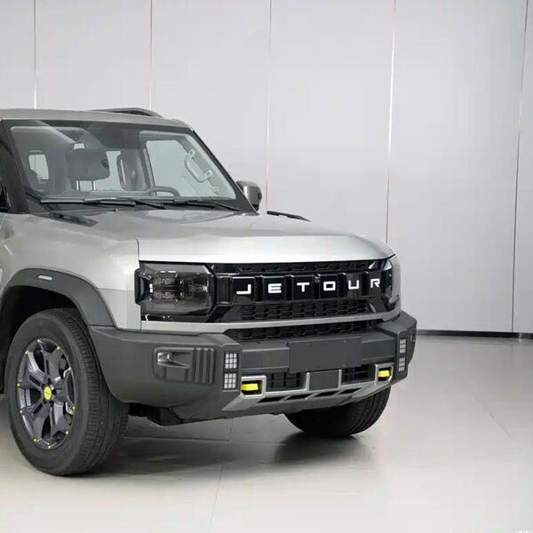 «Решётка радиатора и фары по бокам объединены в единое целое. В шестисекционную решётку вмонтирован англоязычный логотип Jetour. Передний бампер имеет выступающую над кузовом форму и снабжен небольшими противотуманными фарами по бокам», — отмечается в публикации.