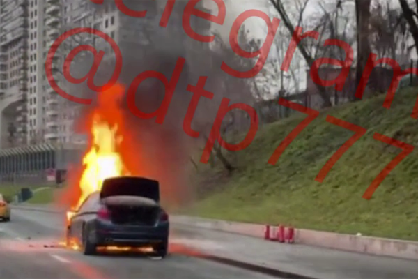 Автомобиль москвича вспыхнул на проезжей части и попал на видео
