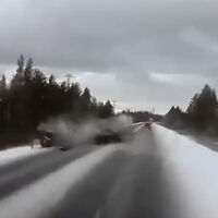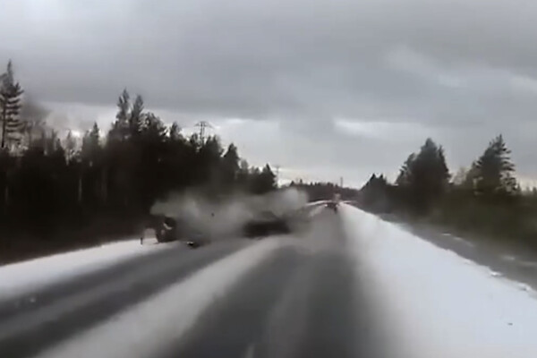 Видеорегистратор автомобиля, водитель которого стал очевидцем произошедшего, запечатлел инцидент. На кадрах видно, как черная машина боком выезжает на встречную полосу движения и врезается в Hyundai. От удара машины отбрасывает в стороны, а автомобильные детали разлетаются по проезжей части.