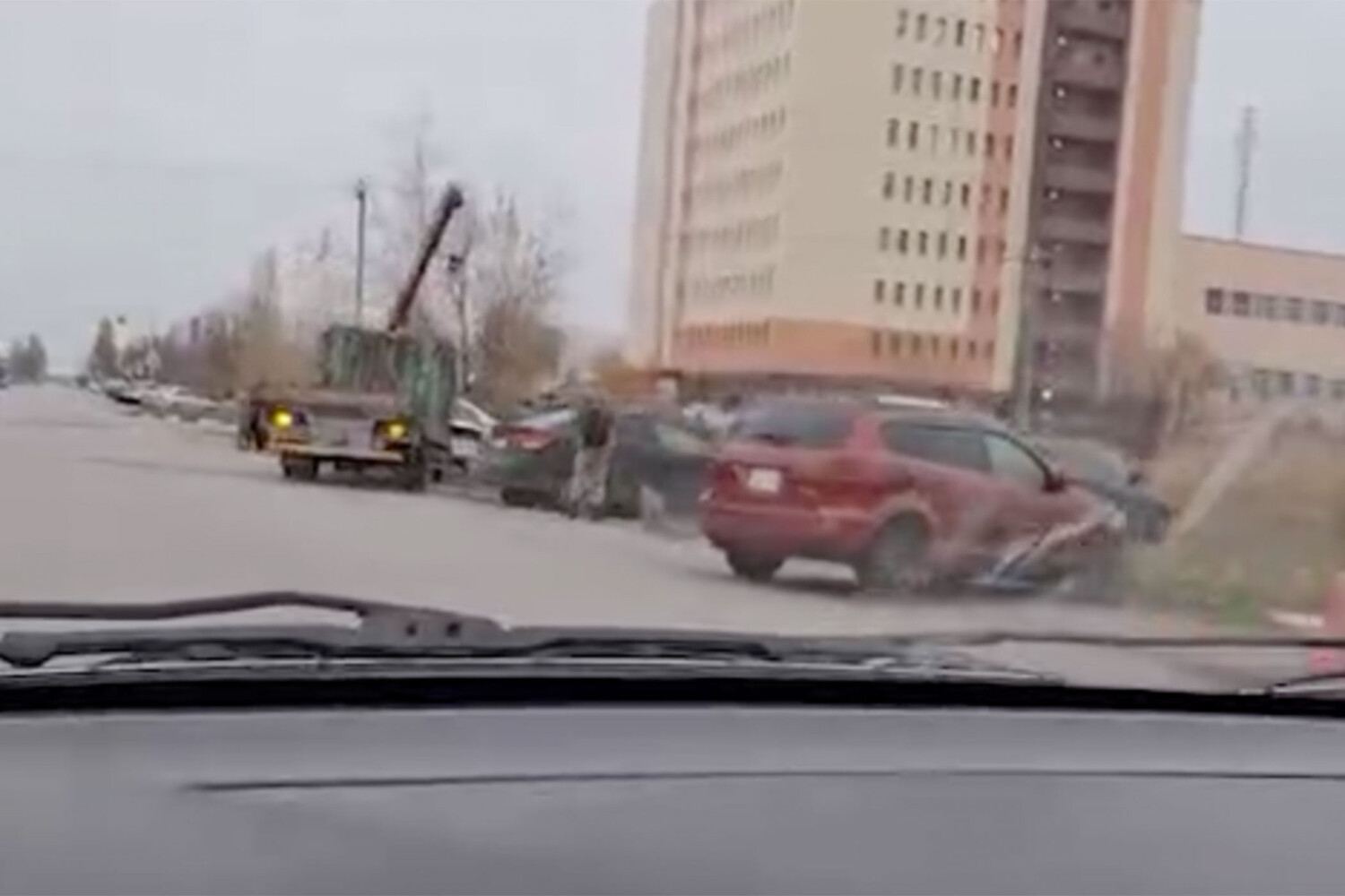 Люди при этом не пострадали. На кадрах с места было видно, что у одного из автомобилей снесло часть кабины, а детали транспортных средств разлетелись по парковке. В беседе с сотрудниками правоохранительных органов 39-летний водитель заявил, что не смог остановиться из-за неисправности.
