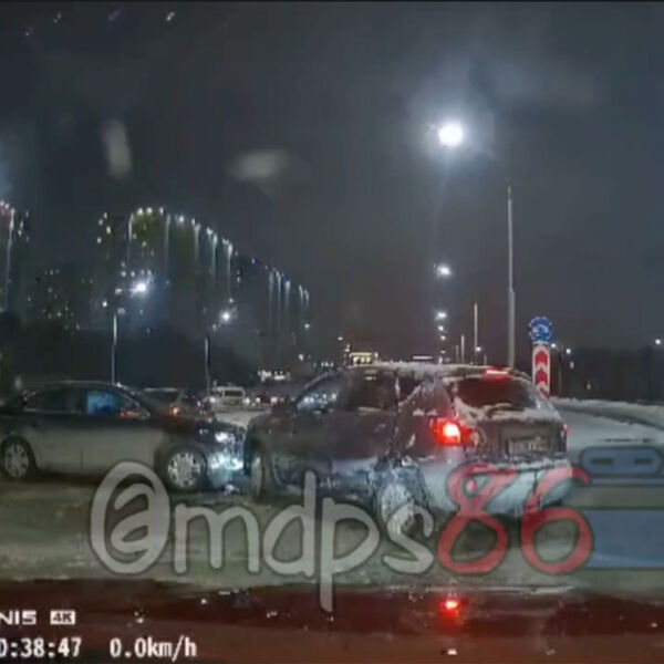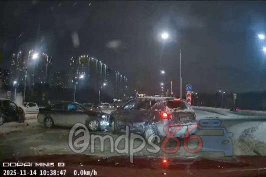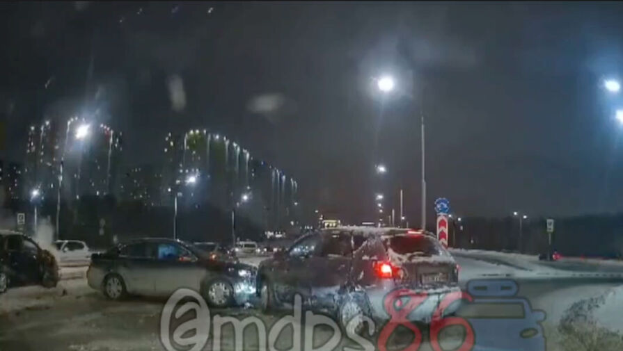 В Сургуте на видео попало, как автомобили с людьми разлетелись в серьезном ДТП