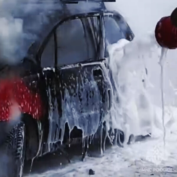 Передние двери машины при этом заблокировались, водитель не сразу смог выбраться из машины. Он получил ожоги головы.