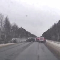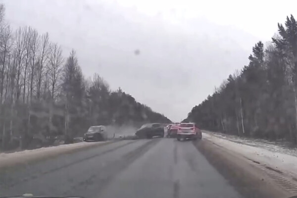 Видеорегистратор автомобиля, водитель которого стал очевидцем произошедшего, запечатлел инцидент. На кадрах видно, как черный автомобиль выезжает на встречную полосу движения и врезается в другую машину, при этом от удара отлетает в соседний транспорт. На записи также заметно, как в момент столкновения машина падает в кювет, а автомобильные детали разлетаются по проезжей части.