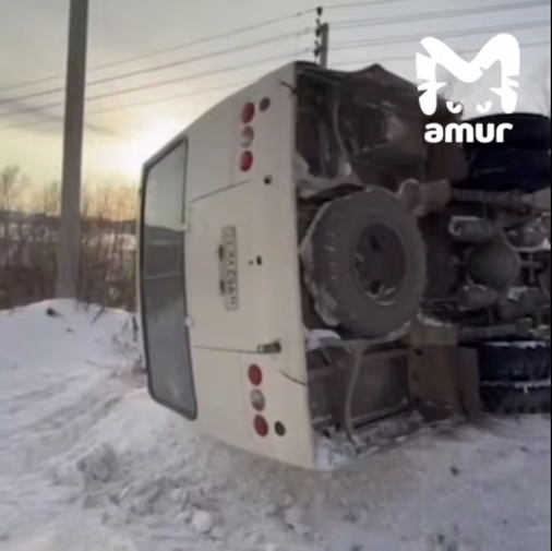 Видео: в Хабаровском крае опрокинулся автобус с людьми