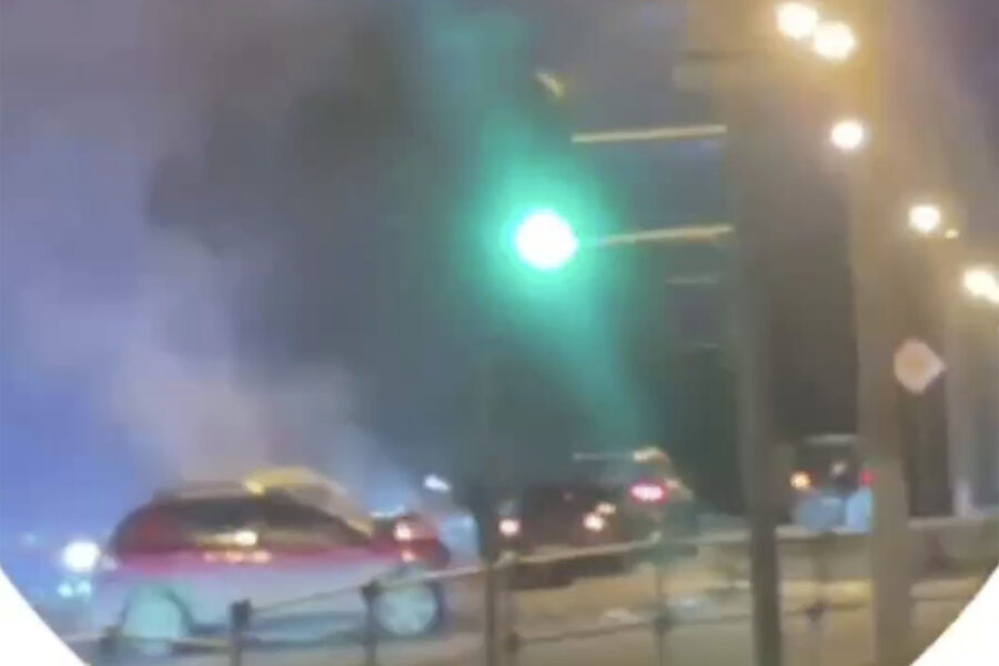 В Новой Москве Renault задымился после лобового ДТП и попал на видео
