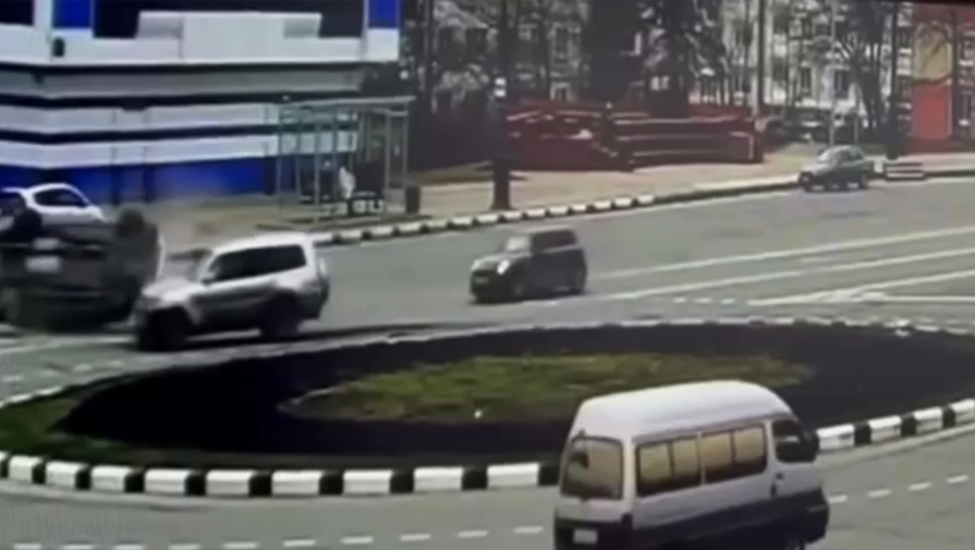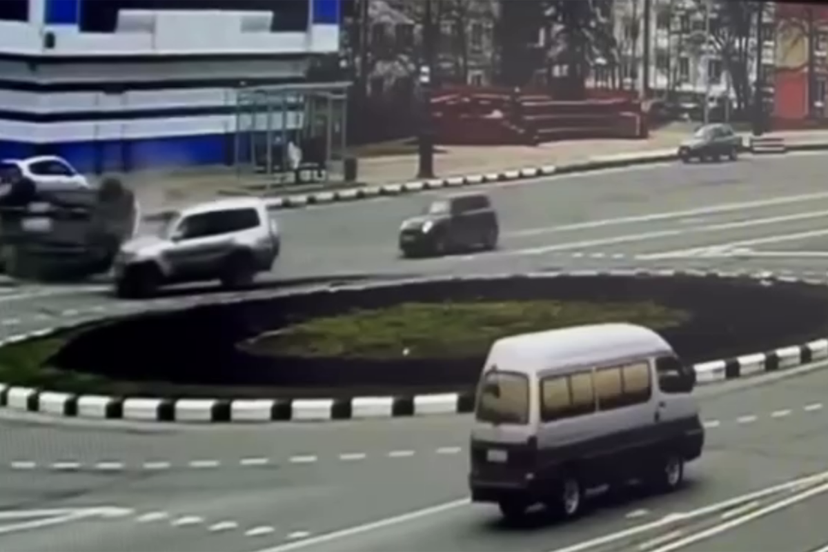 Уличная камера запечатлела инцидент. На кадрах видно, как от удара иномарка переворачивается и падает на бок. Информация о состоянии водителя уточняется.