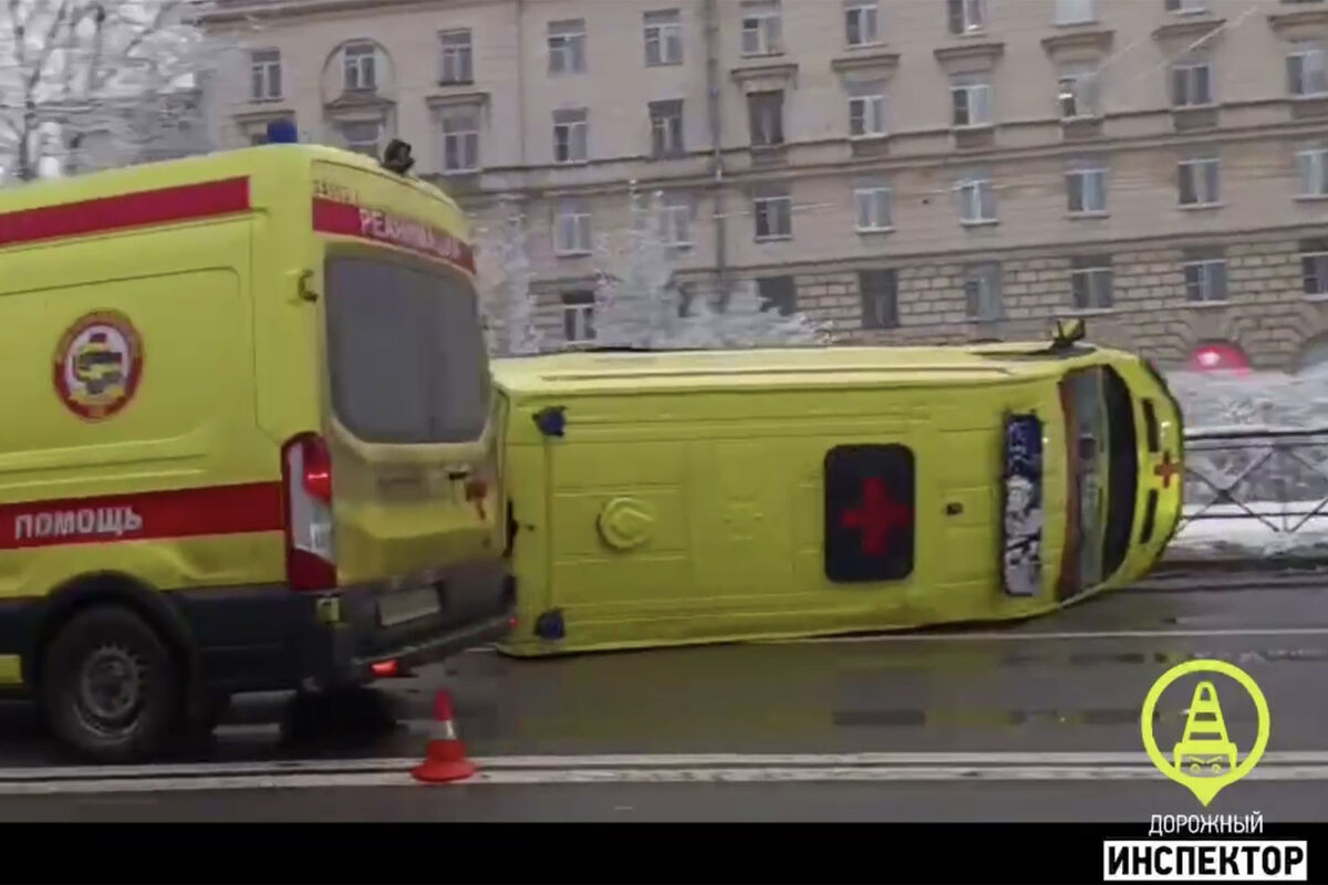 Реанимобиль опрокинулся в Санкт-Петербурге и попал на видео