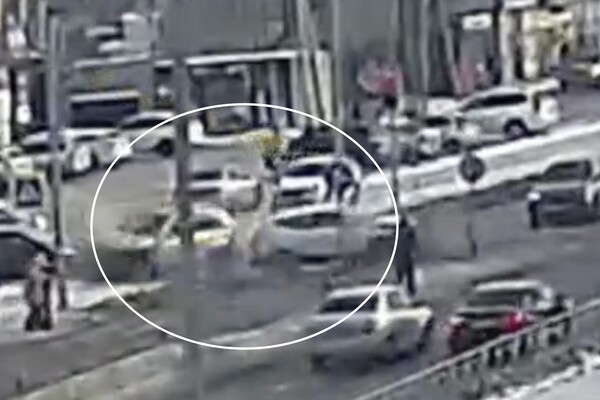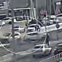 На кадрах видно, что автомобиль Nissan Qashqai пересекал перекресток, когда в него врезался ехавший в перпендикулярном направлении Suzuki Grand Vitara. От удара Nissan развернуло вокруг своей оси, а Suzuki вылетел с проезжей части в пешеходную зону и едва не сбил двух людей, которые стояли перед пешеходным переходом.