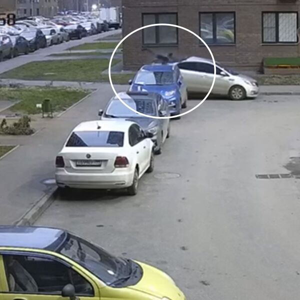 На кадрах видно, что бежевый легковой автомобиль Kia Rio был припаркован у стены дома. Мужчина упал с большой высоты, проломив заднюю часть машины. Мужчина после падения взлетел в воздух и упал на асфальт. От удара у автомобиля погнулась крыша и был разбит багажный отсек.