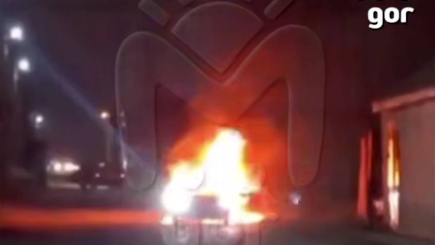 В результате пострадавший получил травмы, несовместимые с жизнью. На кадрах с места происшествия видно, что автомобиль полностью охватил огонь. На фоне слышен непрерывный гудок автомобильного звукового сигнала.