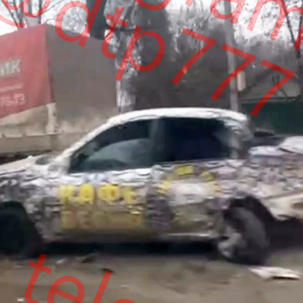 В кадр попали несколько разбитых автомобилей на перекрестке, а также лежащий в кювете самосвал. По дороге разбросаны мелкие детали от машин.