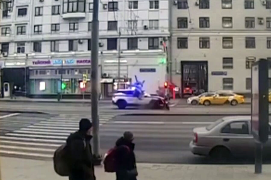 В Москве патрульный автомобиль сбил курьера на пешеходном переходе. Об этом сообщает Telegram-канал «Москва на дорогах».