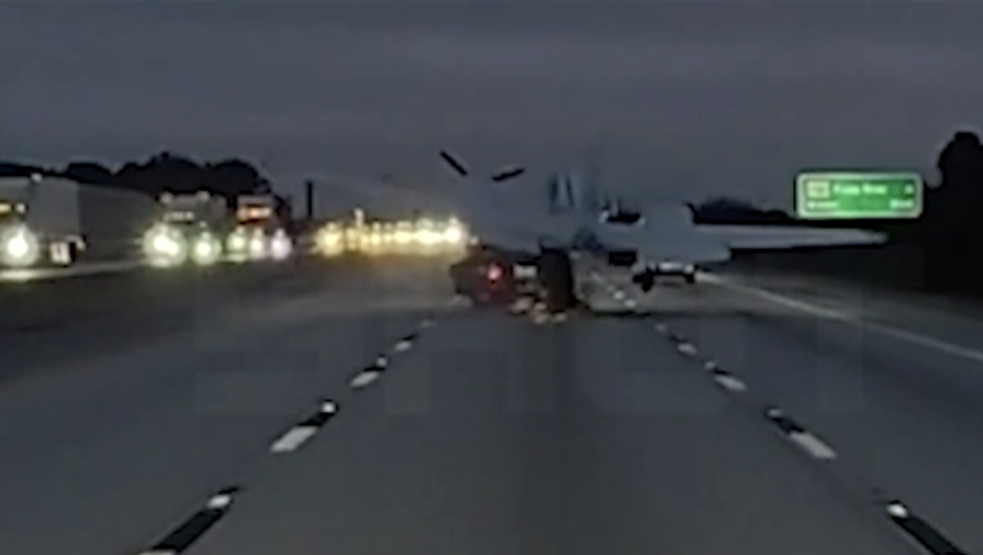 В США на видео попало, как самолет упал на трассу и протаранил авто с людьми
