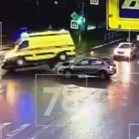 «Момент жесткого ДТП с реанимобилем в Кингисеппе попал на видео. Судя по кадрам, водитель легковушки ехал на мигающий зеленый и на перекрестке врезался в бок реанимобиля», — говорится в публикации.