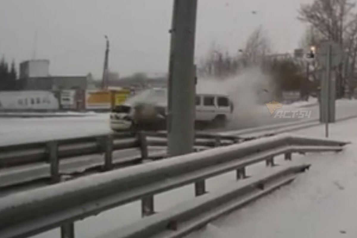 На кадрах, опубликованных Telegram-каналом «АСТ-54 Black», видно, что автомобиль Toyota поворачивал налево на перекрестке под зеленую стрелку на дополнительной секции светофора. В этот момент в него врезался внедорожник Mercedes-Benz G-Class, который на высокой скорости ехал прямо. Удар пришелся в правый бок Toyota.
