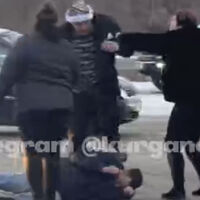 Очевидцы запечатлели инцидент на видео. На кадрах видно, как люди пинают лежащего на проезжей части человека, при этом мужчина пытается закрыть голову руками. На записи также слышно, что нарушители грубят и нецензурно выражаются.