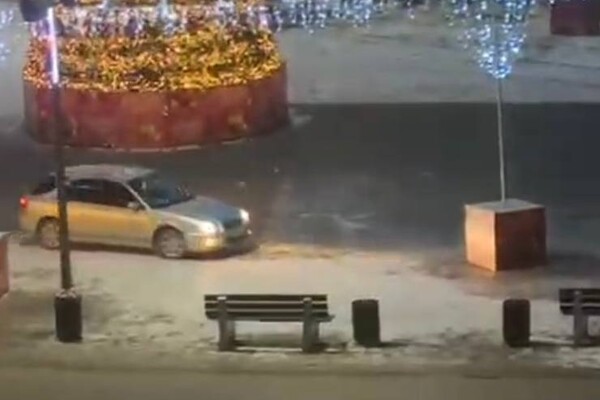 В Приморье на видео сняли, как Subaru влетел в новогодний городок в момент дрифта