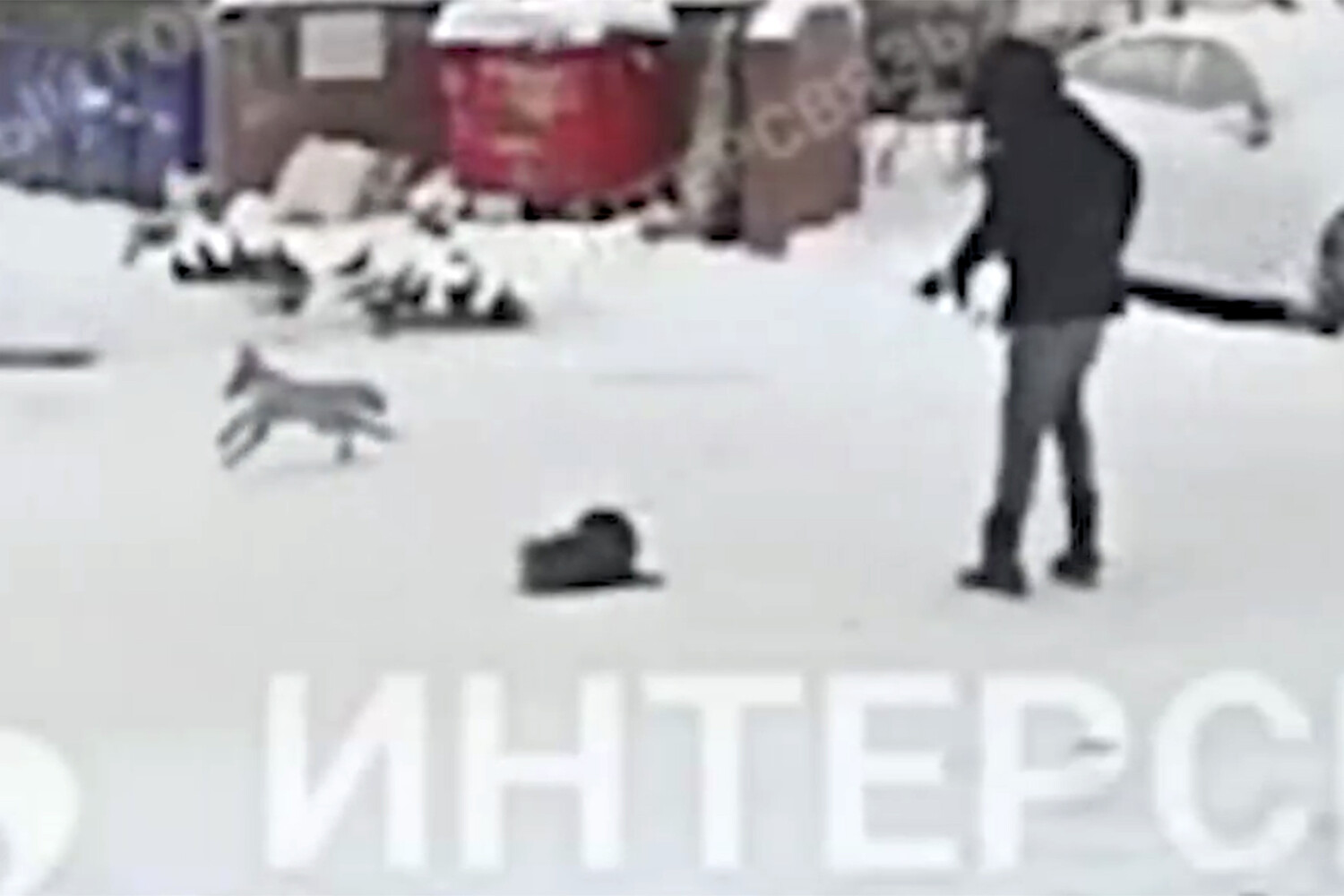 В Челябинске на видео попало, как лиса пыталась напасть на собаку на дороге