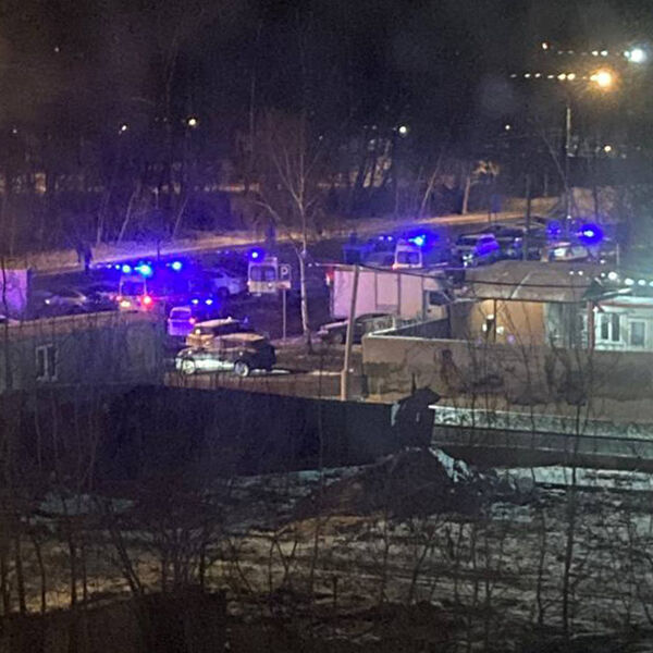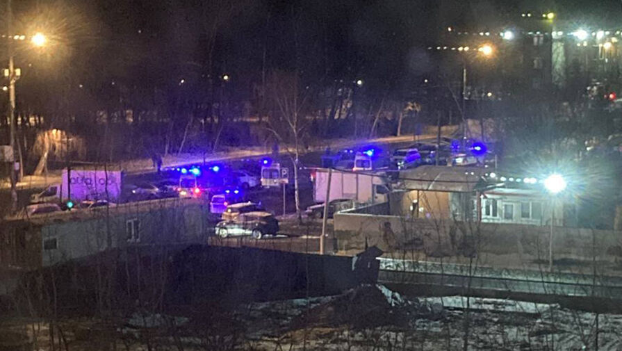 Судя по опубликованному видео, на место ночного происшествия не менее шести полицейских машин, а также автомобиль скорой помощи. У всех машин включены спецсигналы.