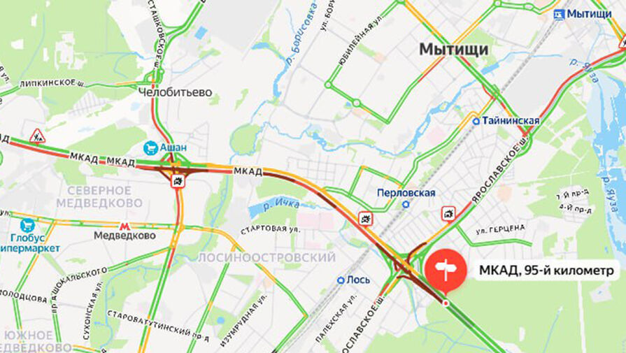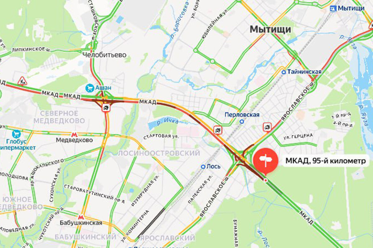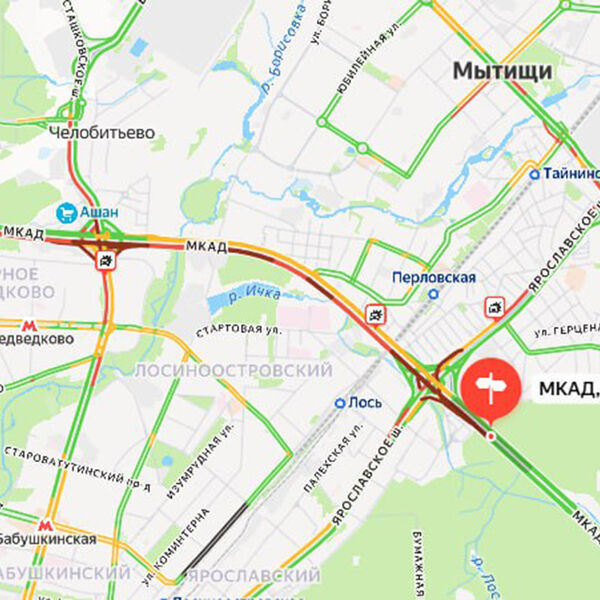 «Серьезная пробка образовалась на МКАД в районе Мытищ из-за массовой аварии. Столкнулись 6 авто, пострадали 2 человека», — говорится в публикации.