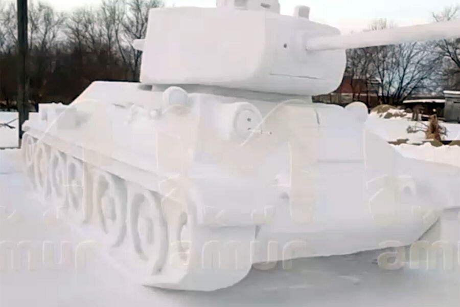 «Юрию Потапчуку из села Константиновка — 78, и он — настоящий мастер. В прошлые зимы он уже сооружал советские авто из белоснежного материала. В этот раз в напарники взял внучка Никиту. Пятиклассник и предложил сваять «Амурского мстителя» — в годы Великой отечественной земляки на свои деньги купили такой танк и передали его гвардейской бригаде», — сообщает канал.