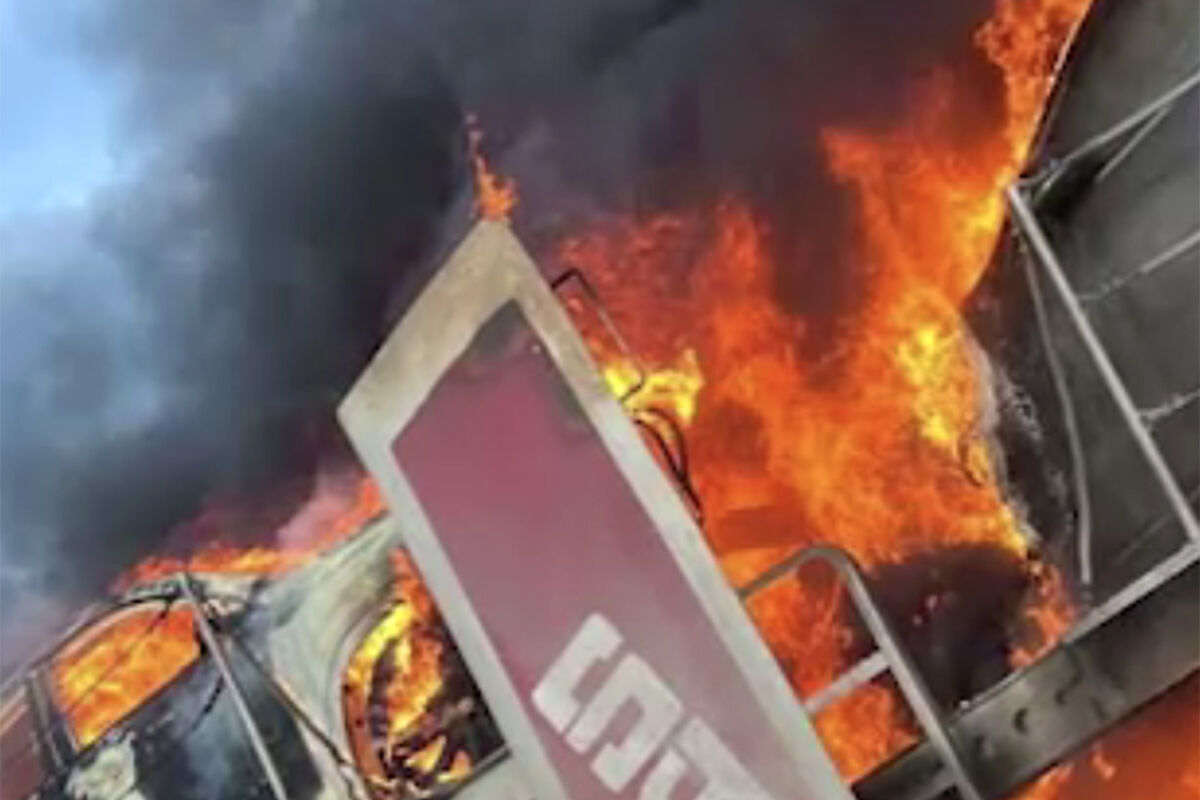 Очевидцы запечатлели инцидент на видео. На кадрах видно, как автовоз горит на проезжей части, при этом пламя охватило транспорт полностью. Также заметно, что возле вспыхнувшего автомобиля ходят люди. О состоянии водителя не сообщается.