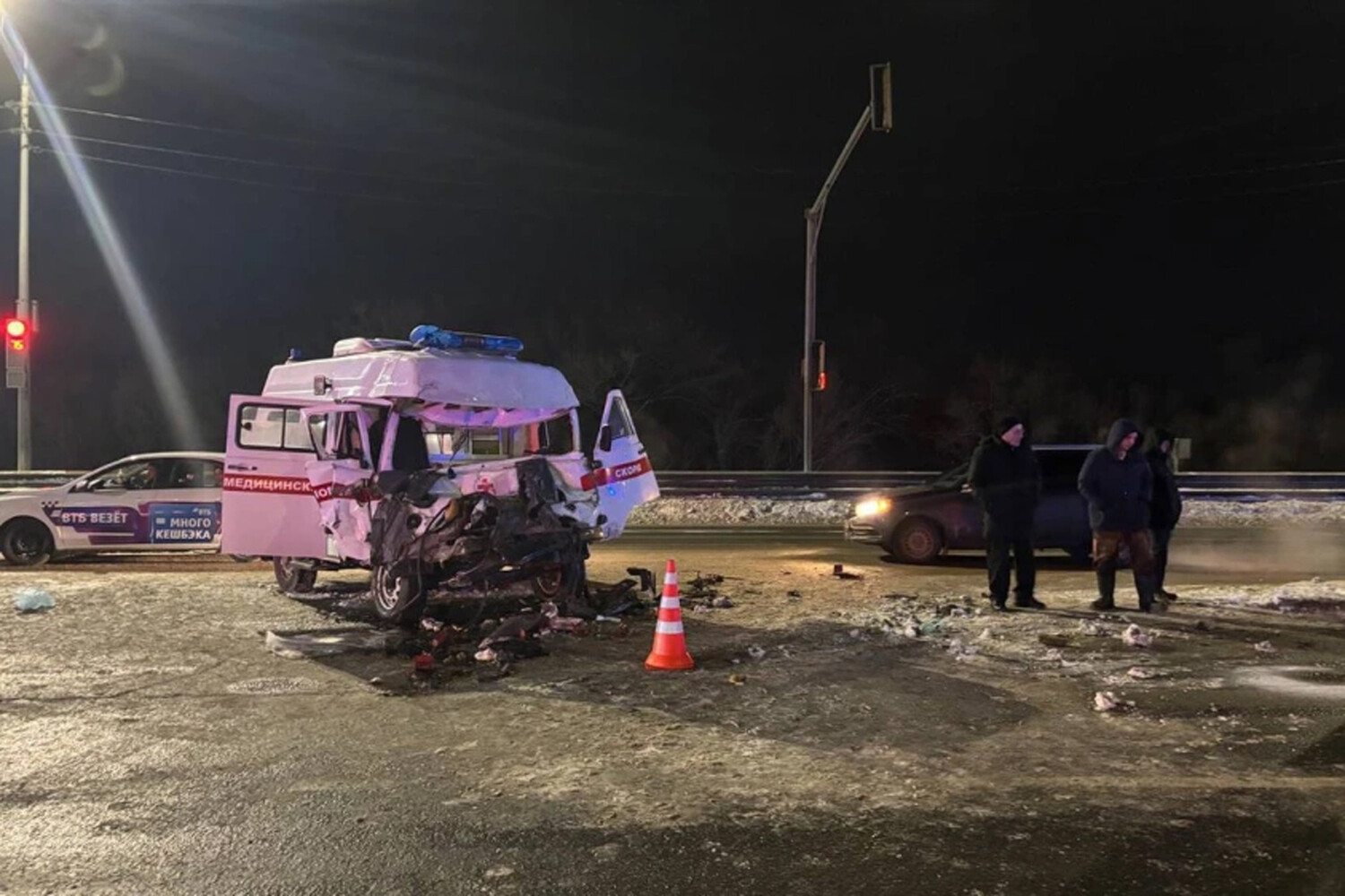 На размещенных в сети кадрах видно, что транспорт медицинских служб получил серьезные повреждения: у машины смят кузов, разбит капот, бампер, а детали разлетелись по проезжей части. По данным канала, в результате аварии мужчина, который находился в коме, не выжил.