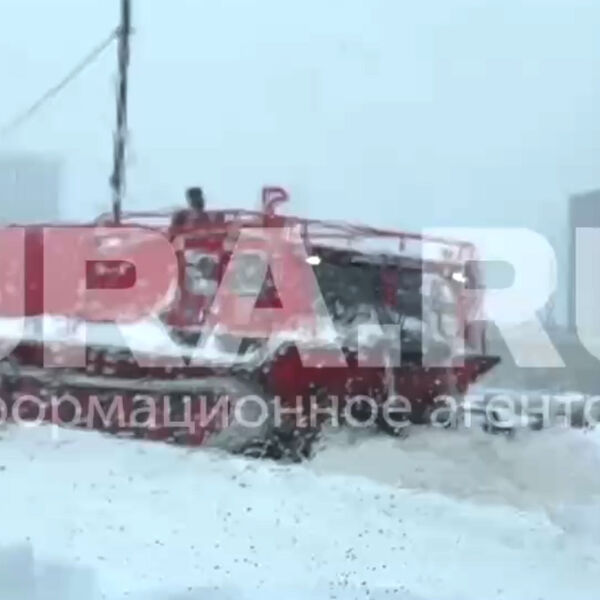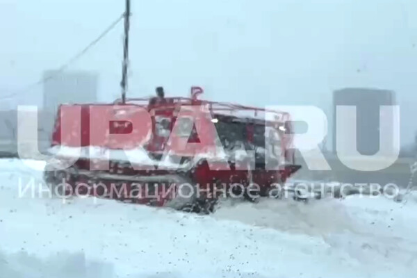 На кадрах с места событий виден гусеничный вездеход с цветографической схемой пожарной охраны. Он очищает обочину трассы. Автор видео сказала, что такую технику используют также для буксировки грузовиков.
