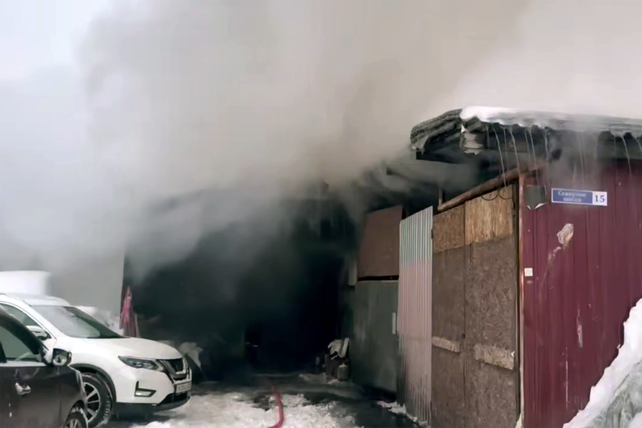 Ранее горящий мужчина выскочил из гаража и рухнул в сугроб в Москве.