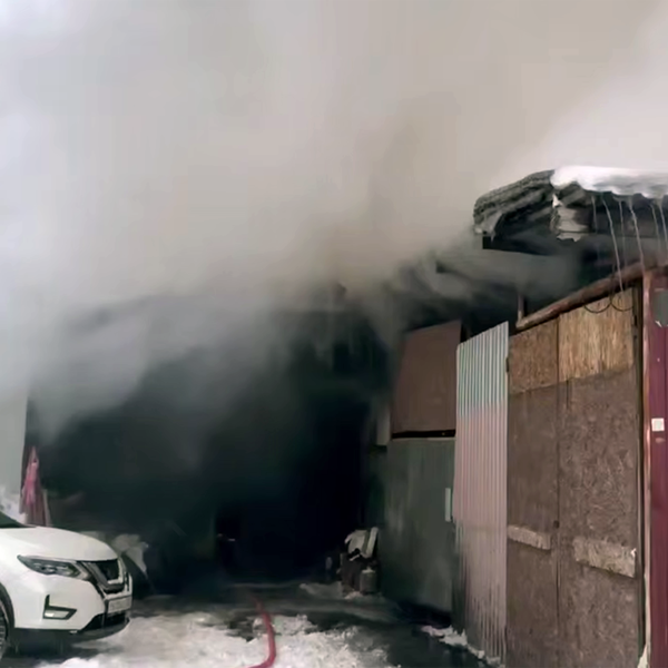 На кадрах, размещенных в сети, видно, что на место пожара прибыли экстренные службы, в том числе автомобиль скорой помощи. В настоящее время пожарные ликвидируют возгорание.