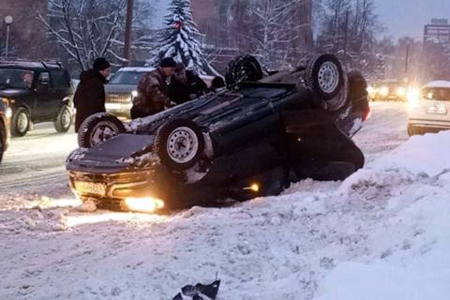 «Момент эпичного переворота на крышу в Сарове. Водитель наехал на сугроб и не справился с управлением», — говорится в публикации.