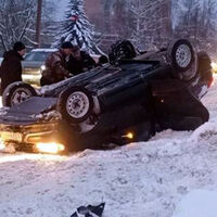 Видеорегистратор автомобиля, водитель которого стал очевидцем произошедшего, запечатлел инцидент. На кадрах видно, как автомобиль врезается в сугроб и переворачивается на заснеженной дороге, после чего приземляется на крышу. О состоянии водителя не сообщается.