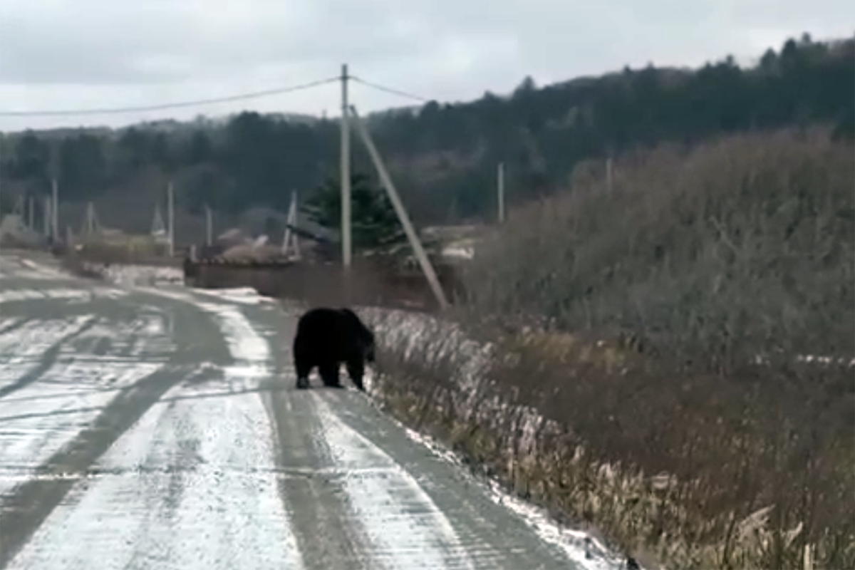 На Курилах медведь-шатун ходил по проезжей части. Об этом сообщает Telegram-канал «Новости Сахалина и Курил».