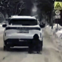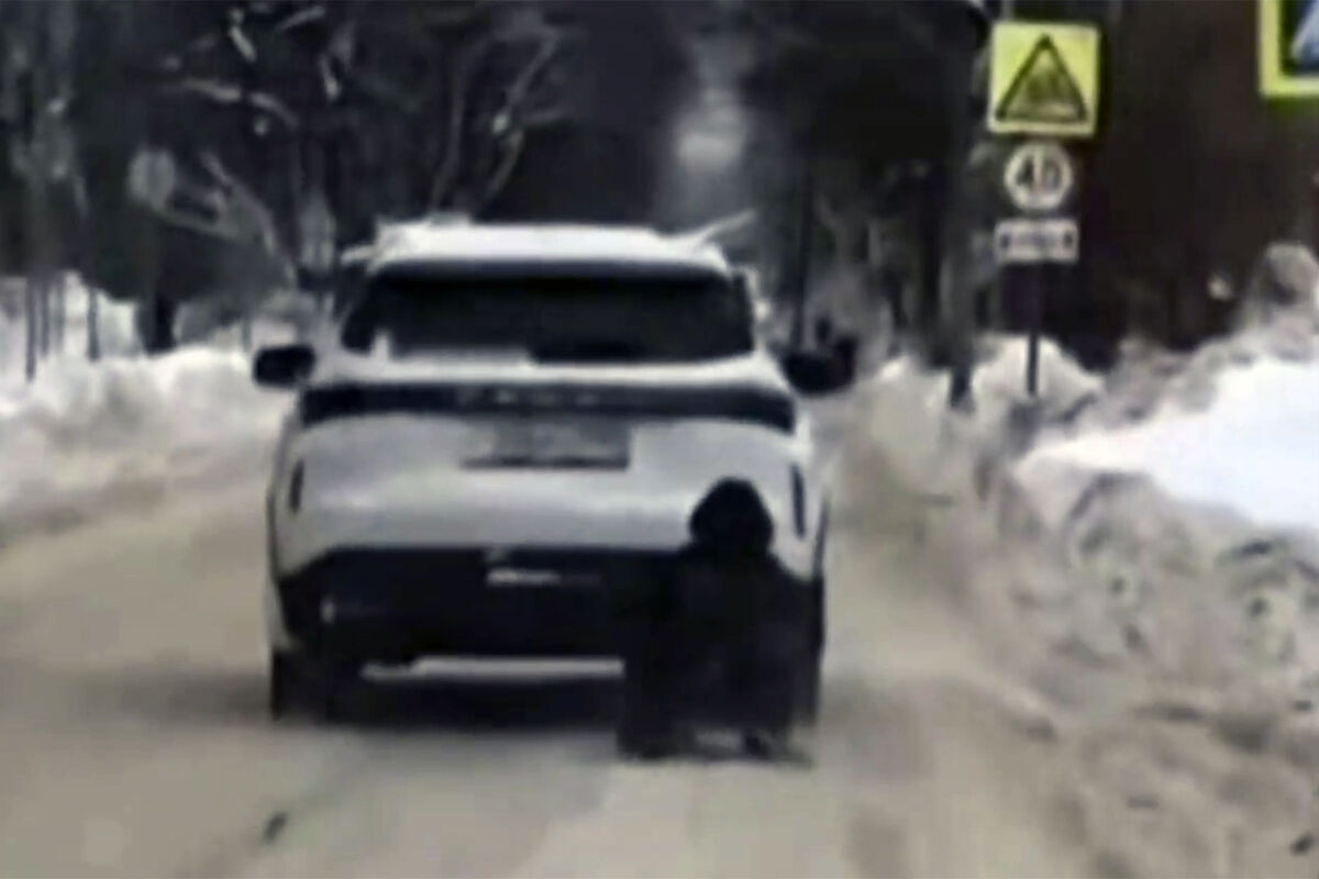 В городе Лобня Московской области водитель катал ребенка на санках, привязанных к иномарке. Об этом сообщает Telegram-канал «Осторожно, Москва».