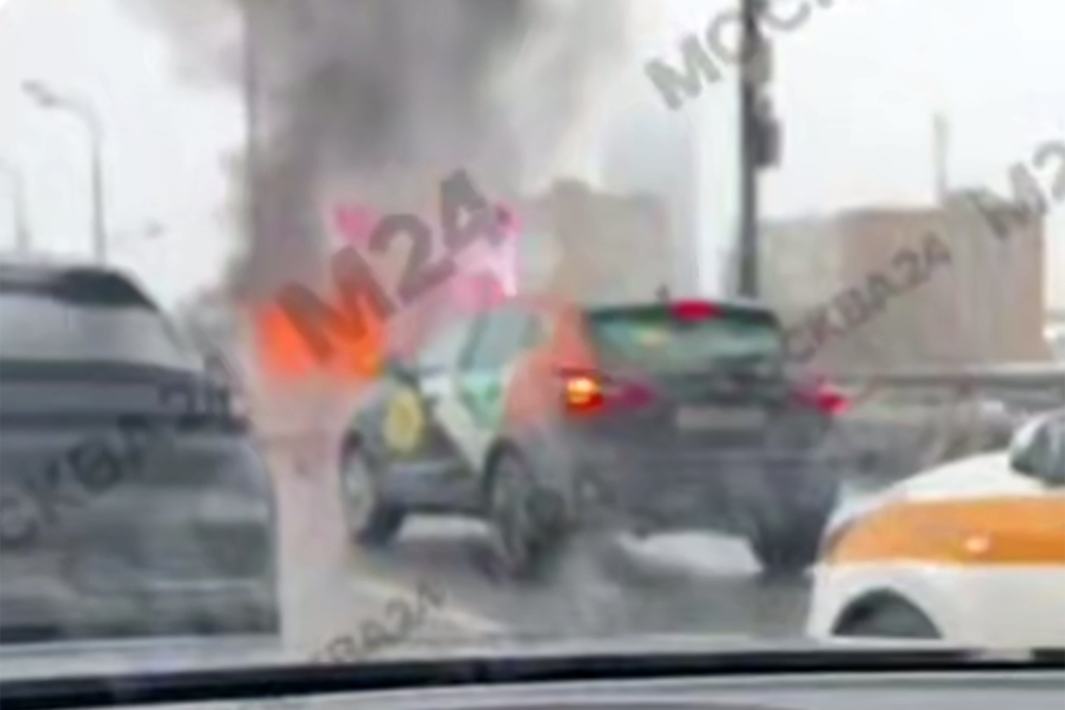 Видео: на западе Москвы вспыхнул автомобиль с человеком