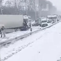 «В ДТП на трассе М7 столкнулось более 10 машин, в том числе большегрузы. Некоторые из них заносило на скользкой трассе, из-за чего в них влетали другие машины. В результате аварии движение в сторону Москвы в районе города Гороховец парализовано. На месте аварии сейчас образовалась пробка длиной около 5 километров», — сказано в посте.