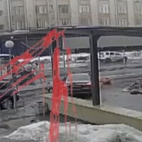 Уличная камера запечатлела инцидент. На кадрах видно, как автомобиль выезжает на проезжую часть, в этот момент по дороге едет курьер, который на скорости врезается в транспорт. От удара водитель подлетает в воздух, переворачивается и падает на землю. К пострадавшему подбегают дипломат и очевидец, которые уводят курьера с проезжей части.