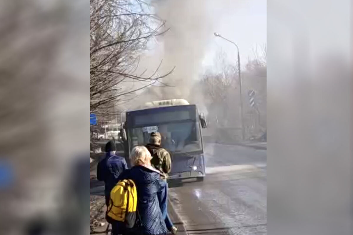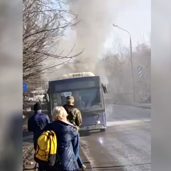 На кадрах, опубликованных каналом, виден автобус, припаркованный у обочины. Из него валит дым.