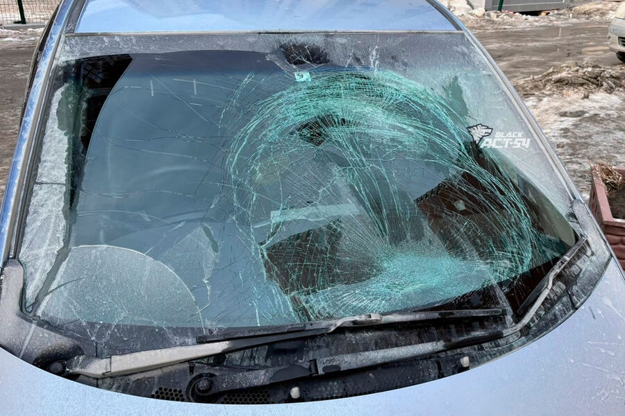 В Новосибирске глыба льда пробила лобовое стекло минивэна во время движения. Об этом сообщает Telegram-канал ACT-54 Black.