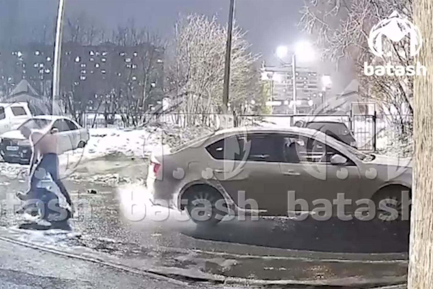 В Башкирии полуголый водитель отпинал пешехода после того, как его сбил.Об этом сообщает Telegram-канал Mash Batash.