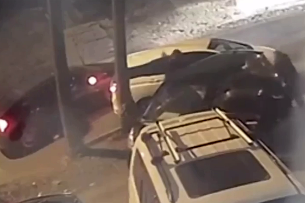 Уличная камера запечатлела инцидент. На кадрах видно, как несколько мужчин избивают водителя черного автомобиля, после чего садятся в свои машины и уезжают. О состоянии автомобилиста и его друга, а также о причинах конфликта не сообщается.