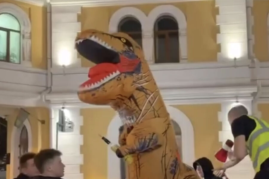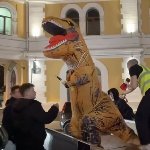 Видео: во Владивостоке люди в костюмах динозавров прокатились в кузове Nissan