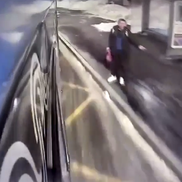 Москвич бутылкой разбил автобус с людьми, и это попало на видео