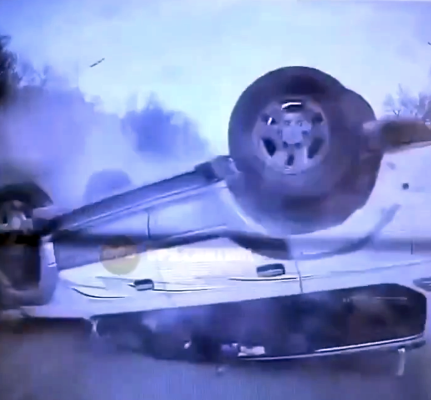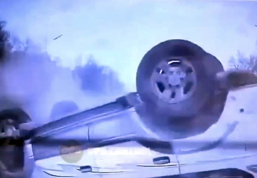 На кадрах с видеорегистратора автомобиля, водитель которого стал очевидцем произошедшего, видно, как машина на скорости сталкивается с отбойником и переворачивается. В момент кульбита транспорт приземляется на крышу.