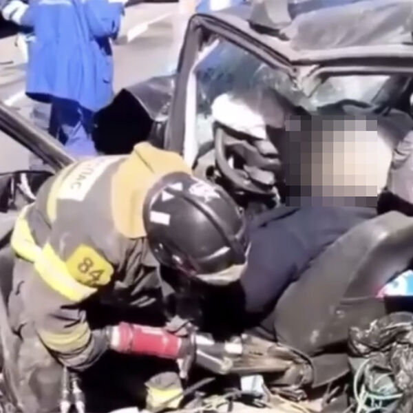 На размещенных в сети кадрах видно, как спасатель пытается освободитель человека, которого зажало на переднем сидении машины. На записи также заметно, что в результате аварии легковой автомобиль получил серьезные повреждения, а его детали разлетелись по проезжей части.